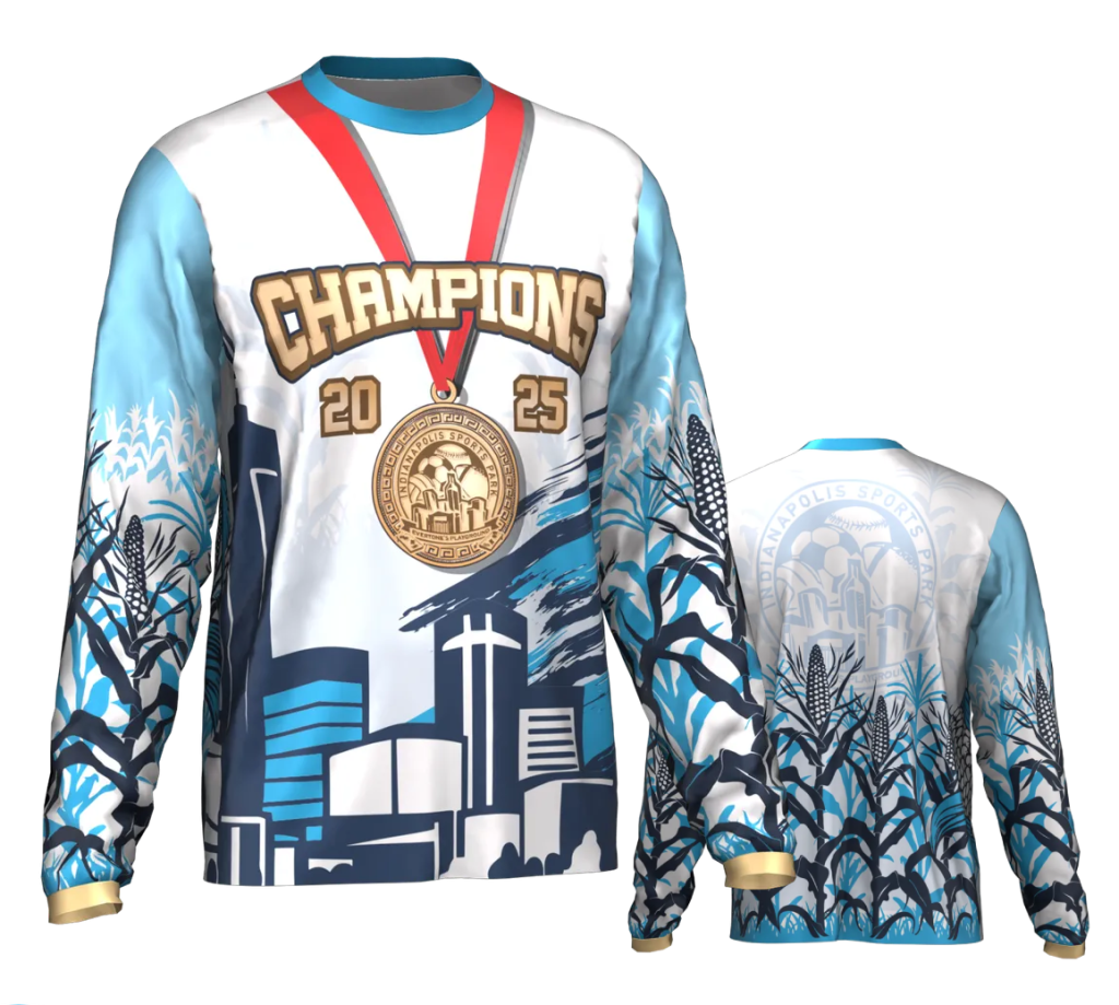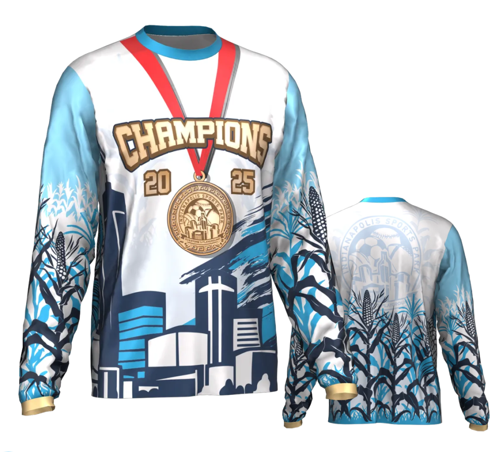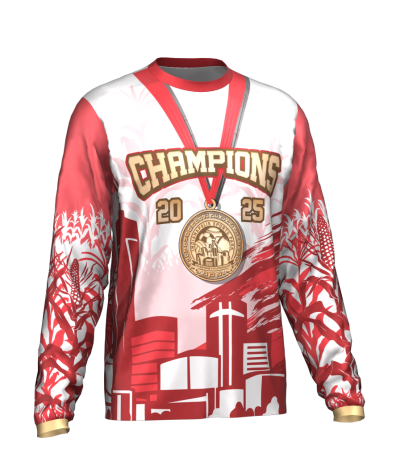 Championship long-sleeve shirt. 100% polyester. Customized with your name and number on the back!