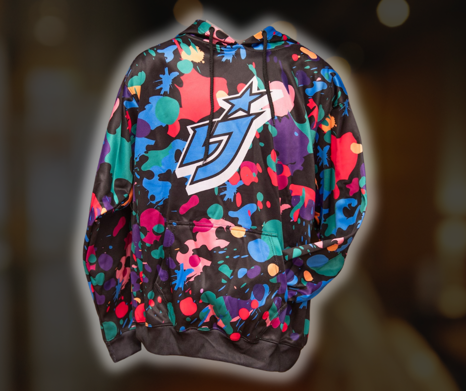 Lighter, fall-feel hoodie with our LJ Splatter pattern